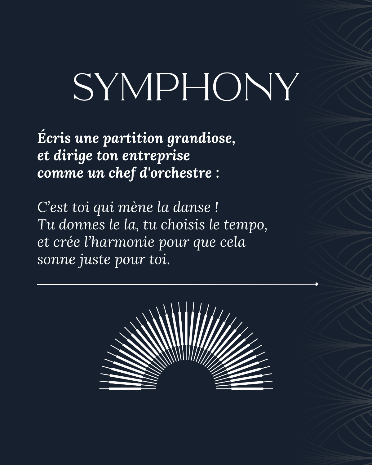 Mon métier de chef d'orchestre et enseignante en musique m'a amené naturellement à comprendre et accompagner les chefs d'entreprise dans leur mission.